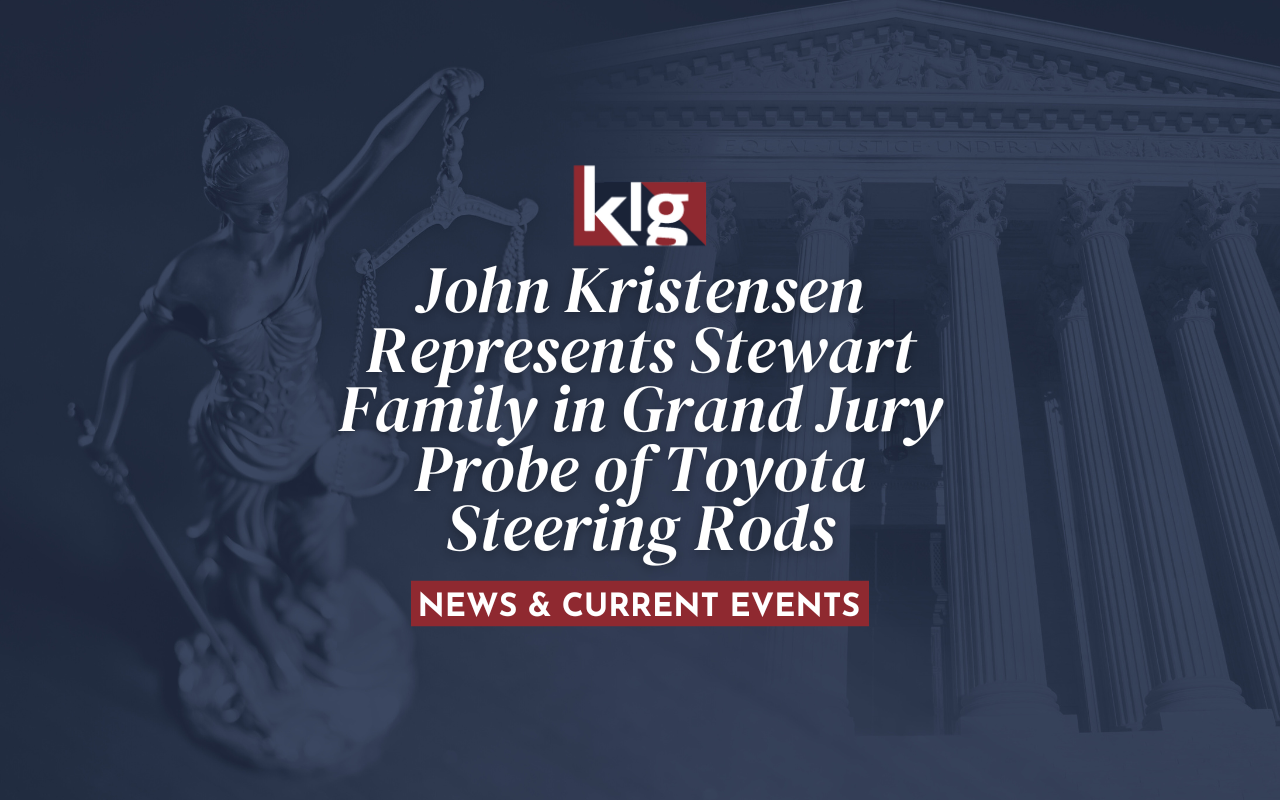 John Kristensen Represents Stewart Family in Grand Jury Probe of Toyota Steering Rods | Kristensen Law November 24, 2025 In a significant development, automotive giant Toyota recently confirmed that it is under a federal criminal investigation by a New